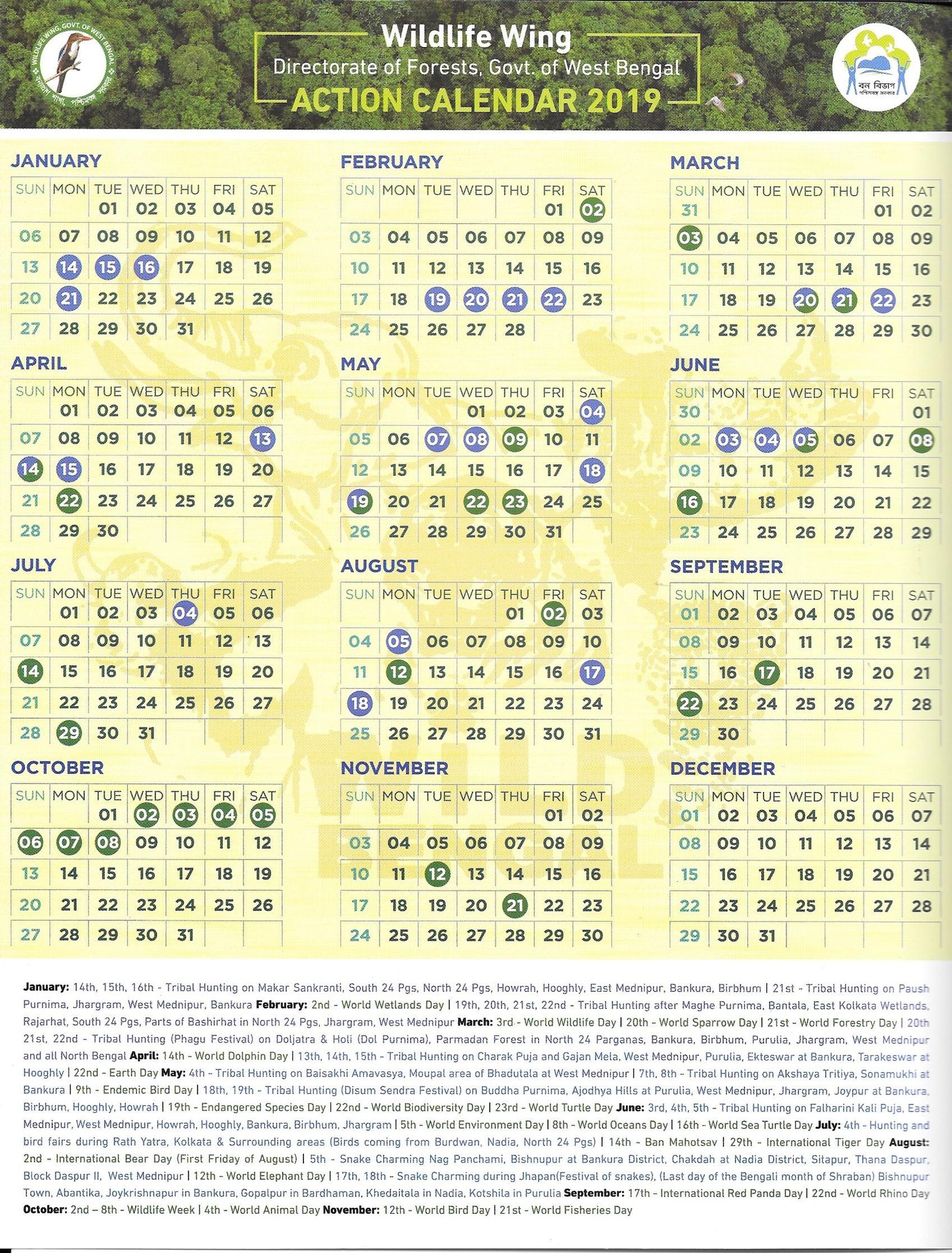 Wildlife Wing Action Calendar